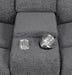 Settle down with a great book or kick up your feet watching your favorite team in the indulgent comfort of a transitional power reclining loveseat. Dual recliners are divided with a storage console, offering a spot to stash remotes and other essentials, and a pair of cupholders for beverages. Soft charcoal upholstery offers a neutral color palette to coordinate with surrounding decor, and offers inviting style. Extra-plush cushions and pillowtop arms bring inviting, indulgent comfort, perfect for a relaxing family room. Power recline mechanisms are operated with the touch of a button, ensuring smooth, seamless performance.