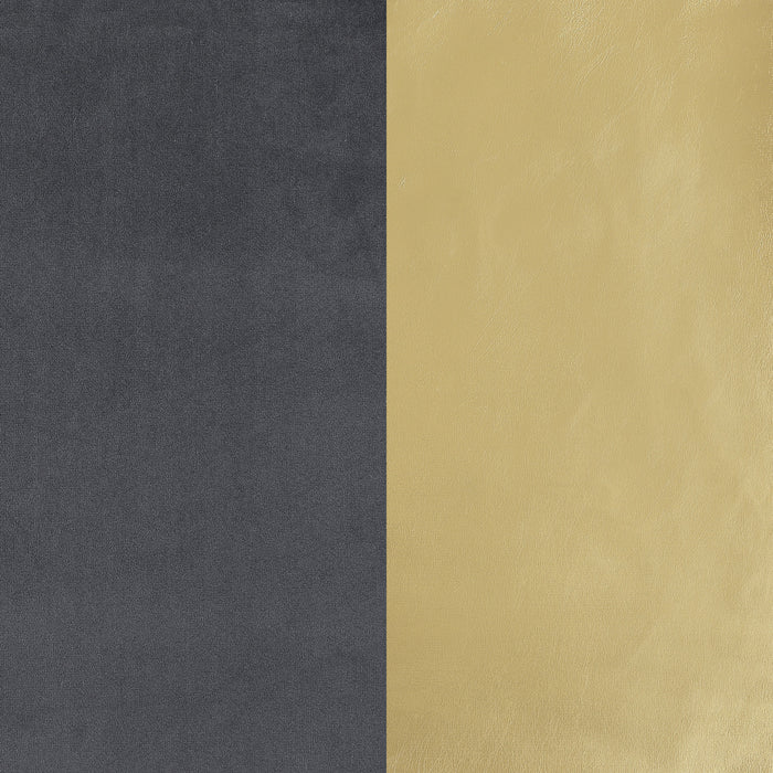 Encourage sophisticated aesthetics with the refined silhouette and gorgeous gold trim featured on a modern sofa. Upholstered in dark gray, it boasts a gently curved kidney silhouette that creates a rich, inviting ambiance in your living room. Its sloping arms and curved front are trimmed in gold, with a matching round accent pillow that brings exceptional style and dimension. The outer surface adds diamond quilted texturing, while vertical channel tufting adds texture to the inner back and arms. A pair of accent pillows in matching dark gray complete the look, offering easy comfort for lounging and entertaining. Key Features: • Diamond tufting adds depth the outer surface of a modern upholstered sofa in dark gray • Gold trim highlights a gently rounded, mid-century inspired silhouette and creates sophistication • Fully encased solid and engineered wood frame provides lasting durability and reliability • Seat and back cushions feature foam fill, with silk wading on seat cushions • Seats feature pocket coils and sinuous springs, creating durability and comfort in your home