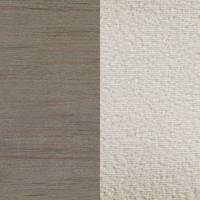 Upgrade your dining table with a set of two modern farmhouse side chairs. Perfect for a casual kitchen table, they feature coastal character with a grey wood finish that offers subtle wood grain patterning. Upholstery is a creamy white with wonderful texture that adds depth and comfort. The inviting chair design includes a gently angled back with a modified ladder back that pairs a wide top slat with a slimmer lower slat to create a compelling asymmetric silhouette. This pair is great for kitchens and dining rooms, alike. Key Features: • Approachable modern farmhouse style infuses a charming wood side chair for your dining table • Features rubberwoods and plywood to create stability and style • Coastal grey wood grain finish is light and on-trend, perfect for casual family dining spaces • Features textured cream upholstery over padded foam for a comfortable, cushioned seat • Modified ladderback design creates a sense of texture and dimension while maintaining casual appeal