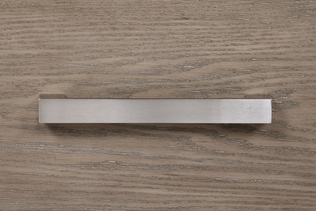 Chrome finish bar pulls add a touch of shine to the neutral barley brown finish of a modern five-drawer chest. Delivering ample storage with a compact footprint, the chest features a streamlined silhouette with mitered trim that creates a sense of depth. The top provides an easy spot for decor or a jewelry box that brings a personal touch. The soft wood grain finish of the chest complements in a variety of bedroom settings, making this a versatile choice for your home. The look is complete with a recessed base that provides a touch of height and airy presence. Key Features: • Augment your bedroom with the easy, stylish storage featured in this modern five-drawer chest • Barley brown finish is soft and neutral, offering a fresh palette for the decor of your choice • Five drawers of equal size provide ample storage for clothing, accessories and linens • Mitered trim adds dimension while chrome finish bar pulls complete the look • Recessed base lightens the look while a wide top with a framed mirror is ideal for personal decor
