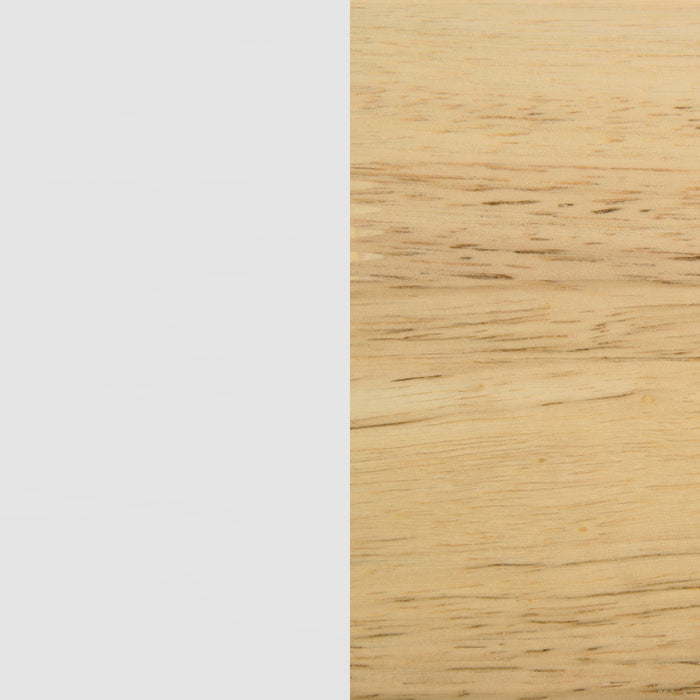Stylish wood construction and a two-tone design highlight this modern twin bunk bed set. Perfect for a kid's bedroom, it offers two twin beds while saving floor space for playing. The bed features an angular frame and a natural wood finish, with white accents on the head and footboards and rails. An attached ladder provides access to the top bunk, which includes guard rails. It's a fantastic solution for siblings sharing a room or for sleepovers. Key Features: • Angular details and a natural wood finish highlight a contemporary twin bunk bed. • Lower bunk features a low head and footboard, each in a white finish that matches the upper bunk • Upper bunk features guard rails on all four sides for added safety • An attached ladder provides easy access to the upper bunk • Foundations are not required for mattresses